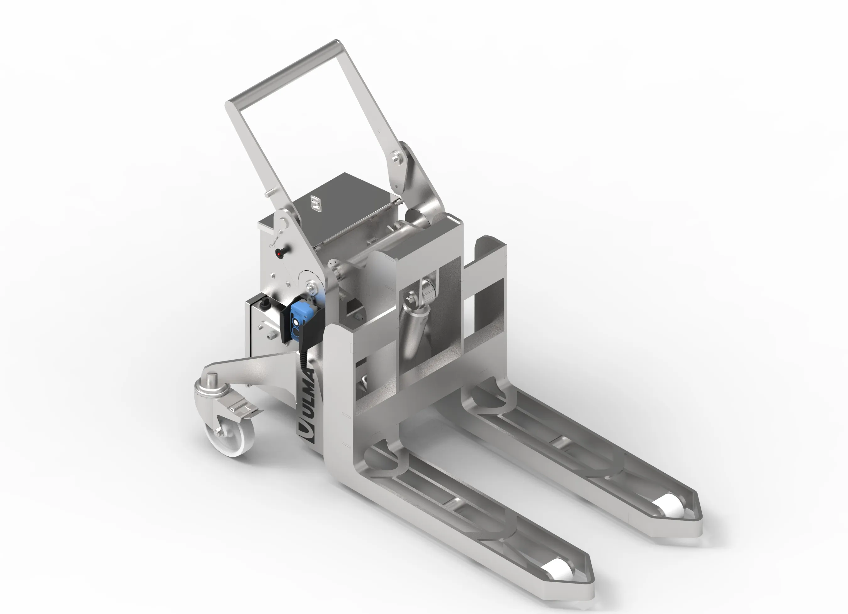 The completely open chassis, the watertight compartment for the lifting system where all electronic equipment is protected and the controls with lifting and high IP protections characterise the hygienic design to the maximum expression, in which folds and nooks and crannies disappear, and together with the continuous welding seams allow the complete cleaning of the equipment without affecting its operation.