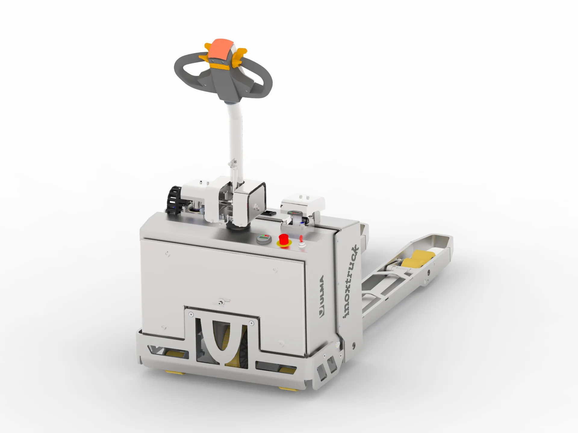 The completely open chassis, the watertight compartment for the protection of the lifting system where all electronic equipment is protected and the high degree of protection IP65, characterise the sanitisable design, in which folds and nooks and crannies disappear, which together with the continuous welding seams allow the complete cleaning of the equipment without affecting its operation.