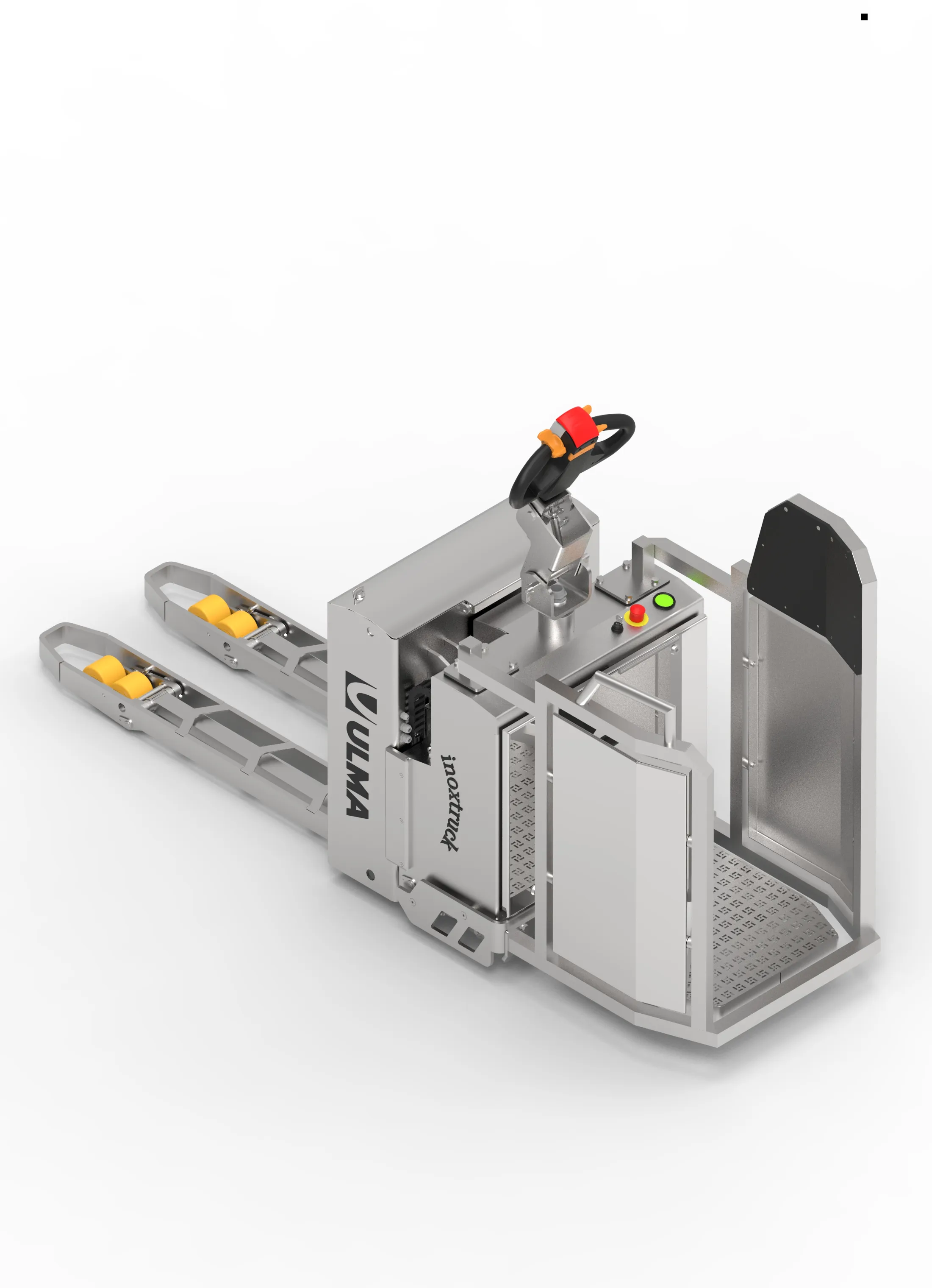 The completely open chassis, the watertight compartment for the protection of the lifting system where all electronic equipment is protected and the high IP65 degree of protection, characterise the sanitisable design, in which folds and nooks and crannies disappear, which together with the continuous welding seams allow the complete cleaning of the equipment without affecting its operation.